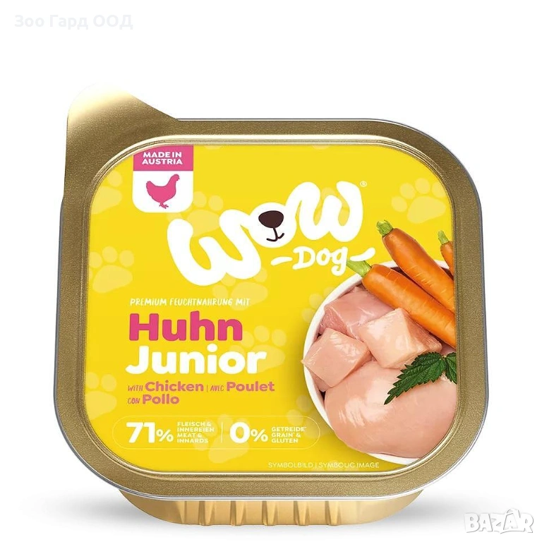 WOW Dog Пастет за кучета 150 г е премиум пълноценна храна, произведена в Австрия от подбрани местни суровини. Разработена съвместно с експерти по хранене и ветеринарни лекари, тази натурална формула е вдъхновена от природата и отговаря на най-високите международни стандарти за качество.
