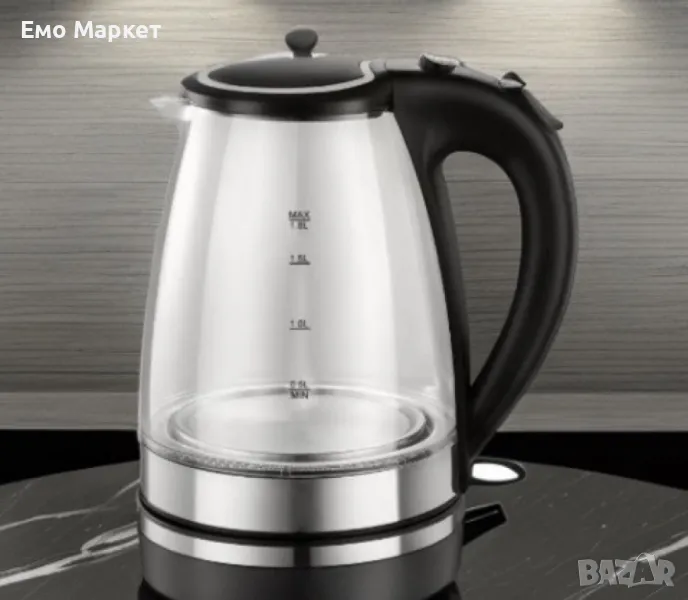Електрическа кана Rosberg, 1800W, 1.8 л, стъклена, Черен. Гаранция 24 месеца