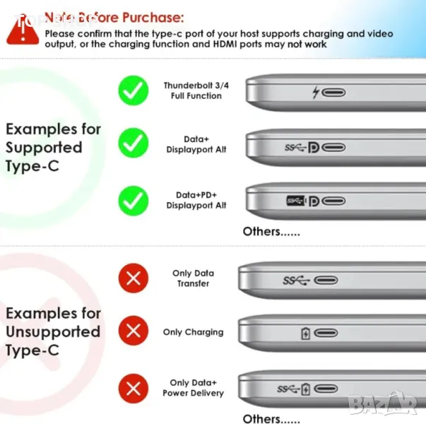 Тази 10-в-1 докинг станция за лаптоп поддържа бюрото ви организирано, като същевременно разширява свързаността с двоен HDMI (4K@60Hz + 4K@30Hz за Windows), 100W захранване (85W за зареждане на лаптоп, зарядно не е включено) и високоскоростен трансфер на данни през 10Gbps USB-A и USB-C портове. Той също така разполага с допълнителни USB 3.0 и USB 2.0 портове за периферни устройства и Gigabit Ethernet порт за стабилни кабелни връзки. Уверете се, че вашият лаптоп поддържа DP1.4+DSC за оптимална резолюция.