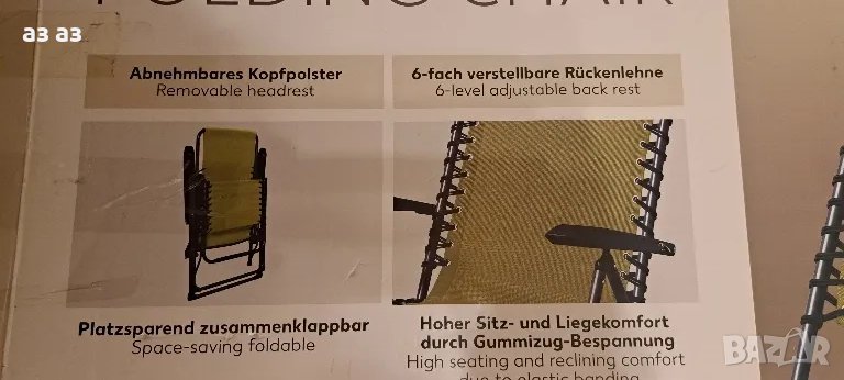 Нов шезлонг с функция лягане/регулируем /сгъваем, снимка 1 - Градински мебели, декорация  - 49452831 Нов шезлонг с функция лягане/регулируем /сгъваем, снимка 2 - Градински мебели, декорация  - 49452831 Нов шезлонг с функция лягане/регулируем /сгъваем, снимка 3 - Градински мебели, декорация  - 49452831 Нов шезлонг с функция лягане/регулируем /сгъваем, снимка 4 - Градински мебели, декорация  - 49452831 1/4