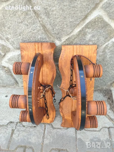 Дървени стенни лампи с ръчно изработени колела и чашки → Обява 49453591