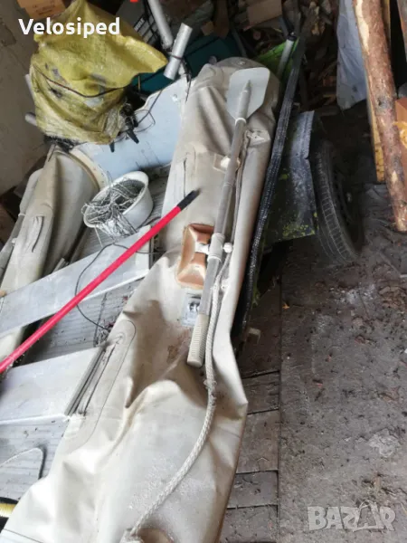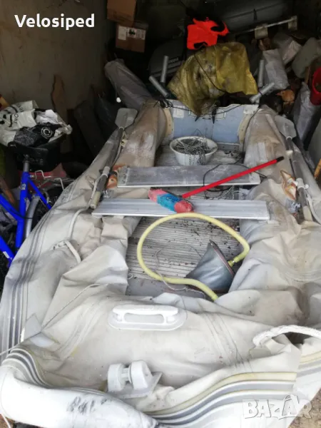 Лодката е за ремонт има тента, гребла и алуминиево дъно транеца е сменен.
