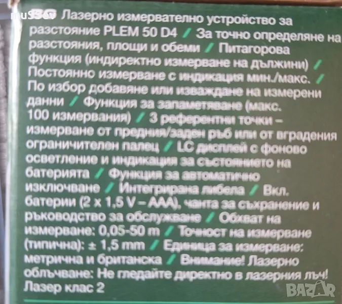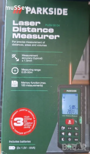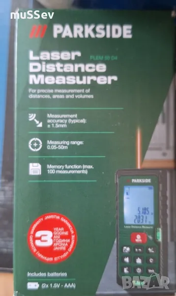 Лазерно измервателно устройство за разстояние модел PLEM 50 дълекомер Parkside → Обява 49453862