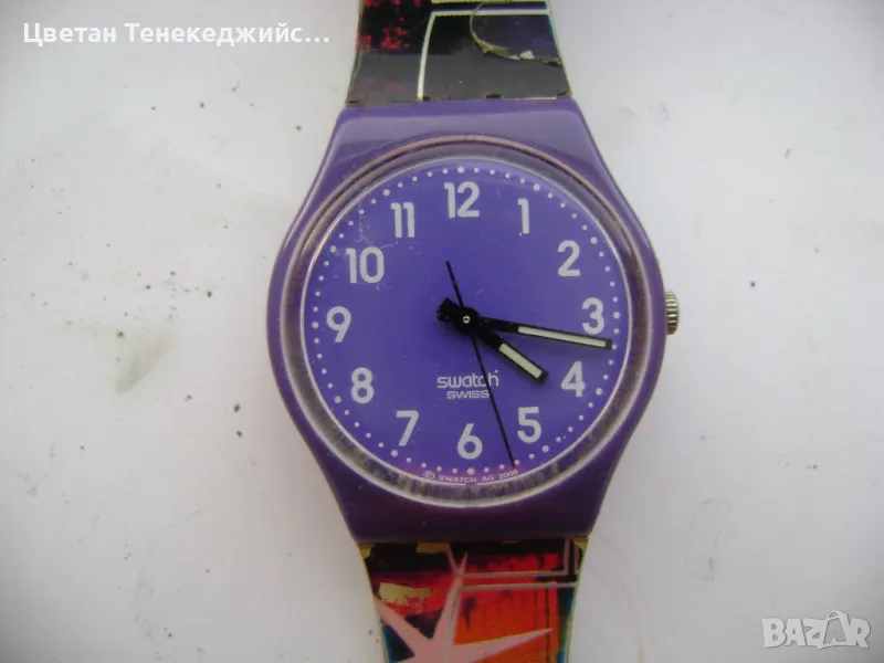 1.Кварцов часовник Swatch Cronograph.Работи точно.Всички малки стрелки са активни.Водоустойчив.Механизъм с 22 камъка.Диаметър на касата без коронката 37,2мм.Кожена каишка.-40лв.Продаден.
