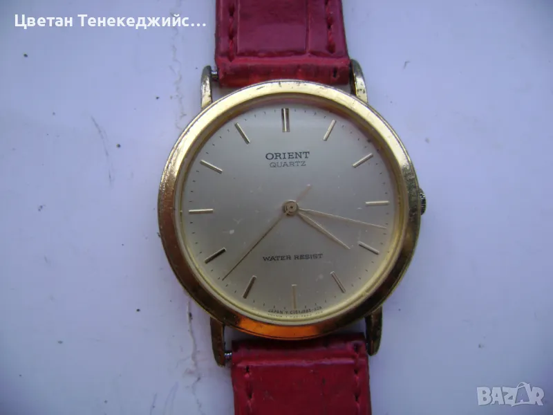 5.Японски кварцов часовник Orient.Работи точно.Водоустойчив.Диаметър на касата без коронката 30,7мм.Кожена каишка-40лв.
