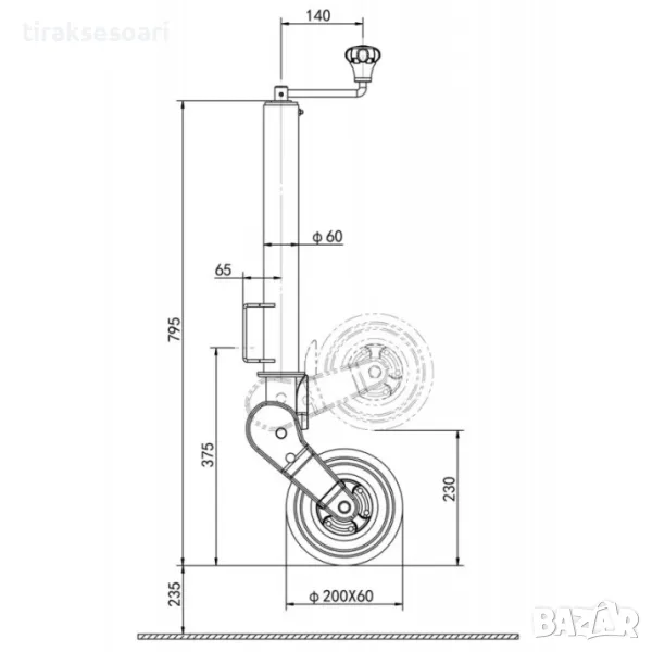 Автоматично жокей колело за авторемаркета. Има монтажна скоба с отвори, която може да се закрепи директно към ремаркето. Регулируема височина . Максималният натиск върху опорното колело е 250 кг . Благодарение на него можете лесно да маневрирате с ремаркето, а закачването и свалянето му от куката е значително опростено.
