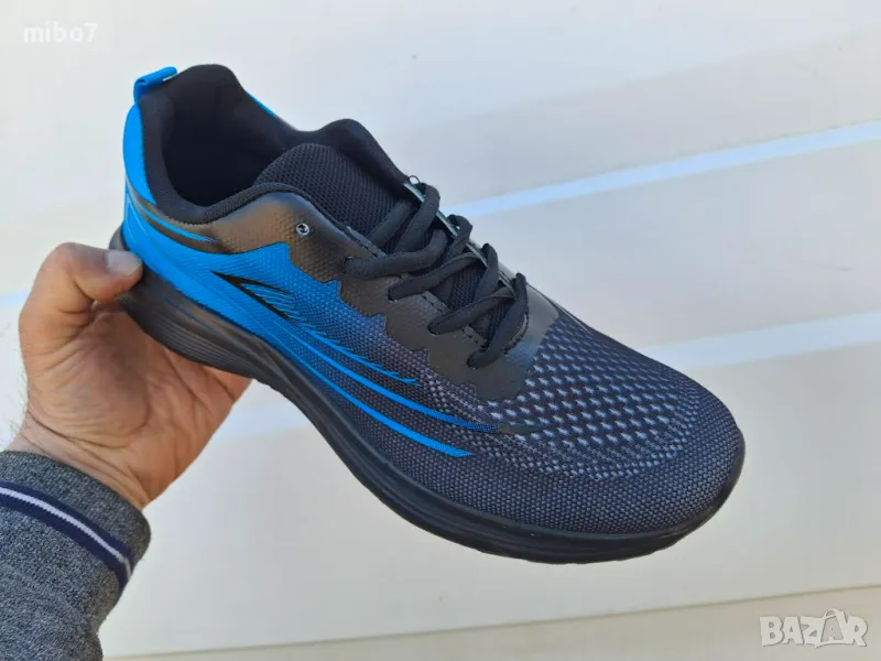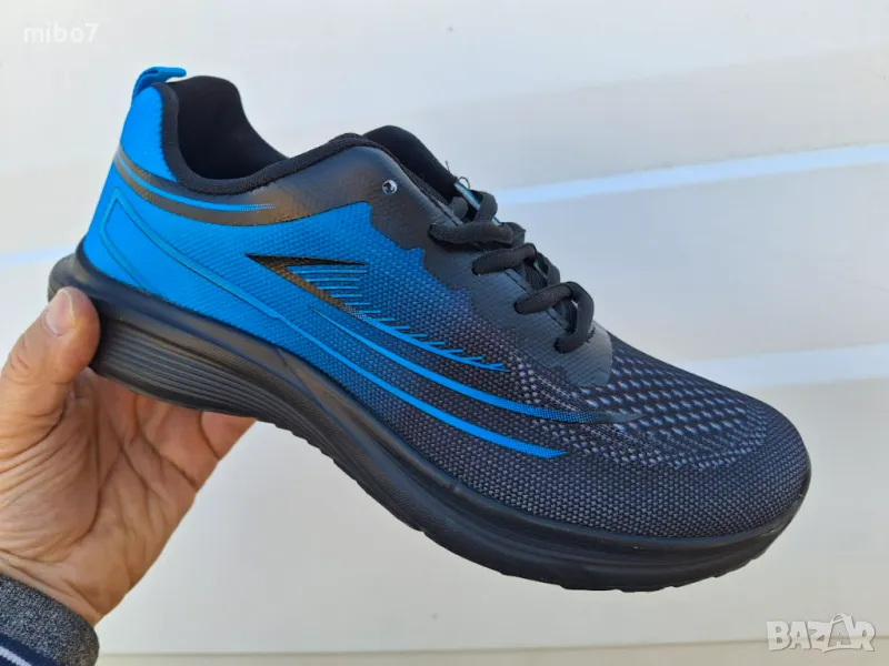 Дишащи олекотени мъжки маратонки в преливащо черно и синьо. → Обява 49455078