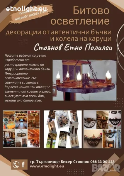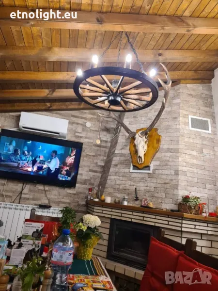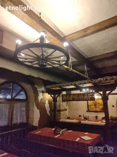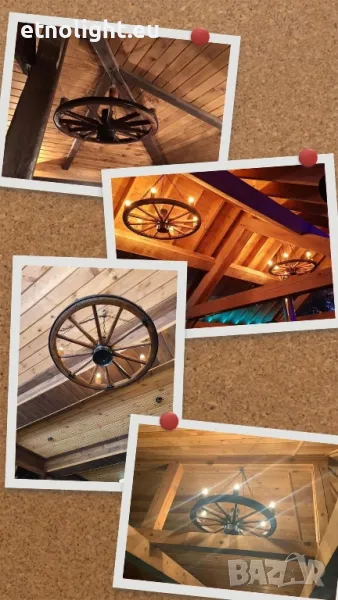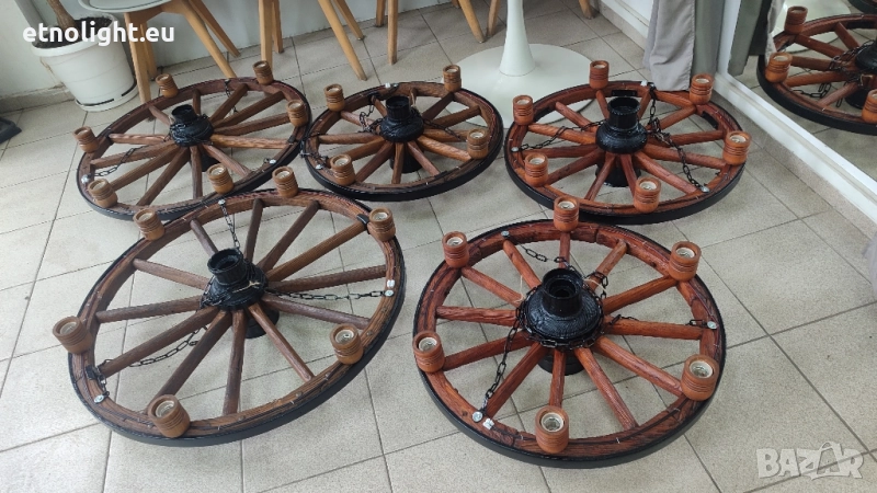 изработваме полилеи от автентични реставрирани колела от каруца с дървени чашки, фасунгите могат да бъдат Е 14 или Е 27 стандартна, цвят и размер по избор, подходящи за вашите механи, навеси, заведения, ресторанти, барбекюта, битови помещения и подаръци , разгледайте всички обяви