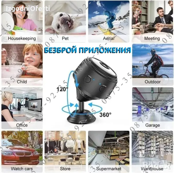 подслушвател, мини незабележима охранителна камера, за наблюдение на бебета (бебефон), деца или възрастни хора. Подходяща за скрито наблюдение и контрол на каси, скъпоценности, персонал (служители). За дома, офиса, магазина, склада. Може да се използва и като автомобилна камера, камера за домашни любимци или да се прикрепи към дрон.