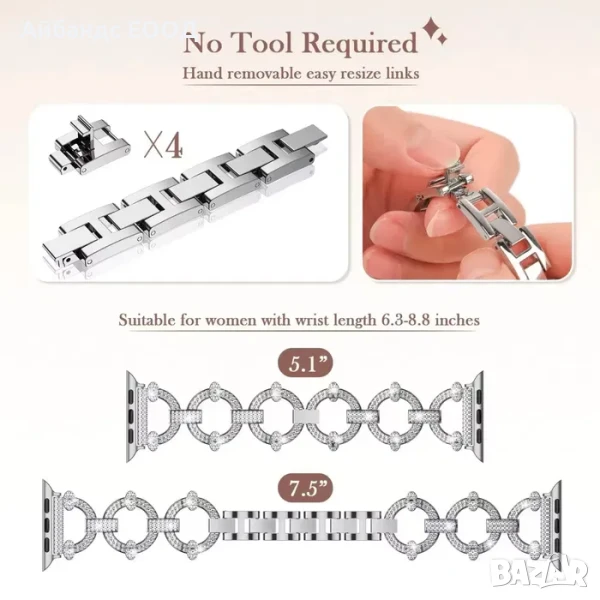 Ключови думи: apple епал епъл аппле апъл апал елегантна elegantna metalna, метална kaishka каишка loop band strap смарт уоч уач watch smart часовник chasovnik, метални, metalni, luksozni, луксозни, си си2 златна zlatna rose gold silver роус голд силвър кристал кристални