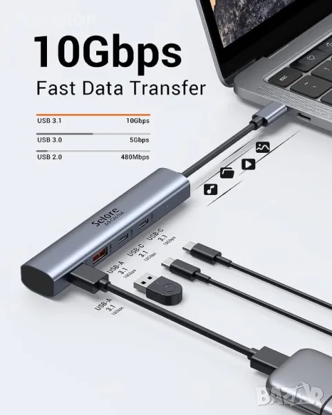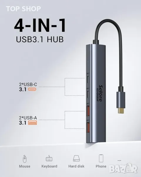10Gbps USB C хъб, USB C към USB C/A, 4 порта (НЕ поддържа зареждане и монитор)