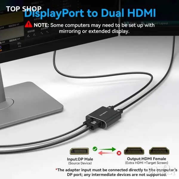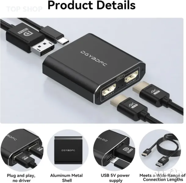 DGYBDFC 4K60Hz Displayport към двоен HDMI адаптер, DP 1.4 към 2х HDMI 2.0