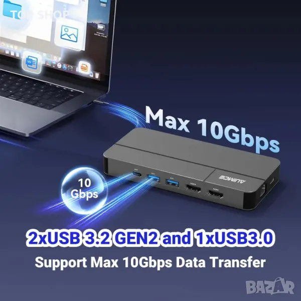 AUIMCE Докинг станция 2х HDMI и USB C порт, до 4K/60Hz, MacOS/Windows