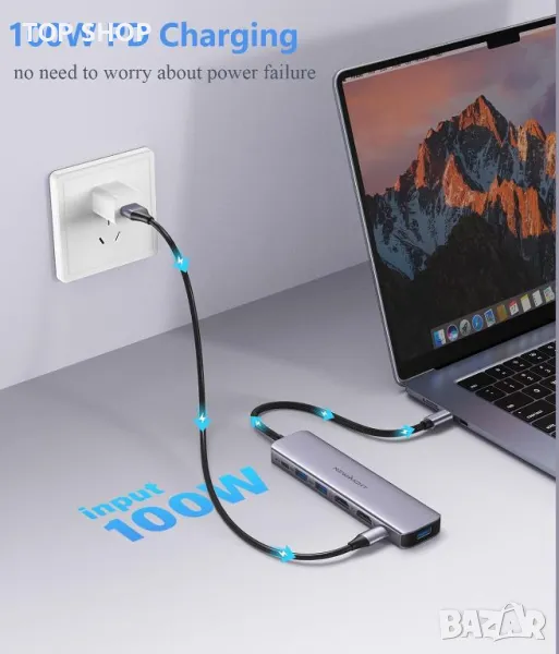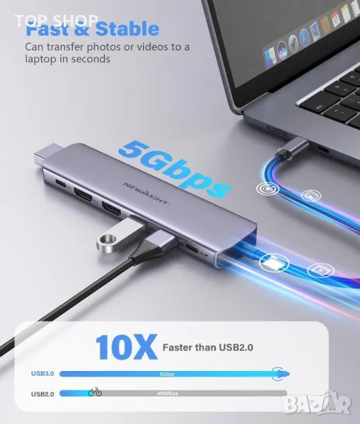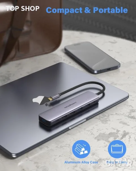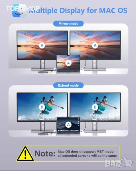 Този двоен HDMI адаптер е проектиран за ефективност и преносимост, включващ два HDMI порта, поддържащи 4K@30Hz за изживяване с висока разделителна способност, три USB 3.0 порта за бърз трансфер на данни до 5Gbps и USB-C порт с PD 100W за бързо зареждане . Той е plug-and-play, не изисква драйвери и е съвместим с повечето лаптопи тип C с Thunderbolt 3, включително различни модели от Apple, Samsung, Dell, Lenovo, HP и други. Адаптерът е изработен от издръжлива, устойчива на износване алуминиева сплав, осигуряваща добро разсейване на топлината и лека, компактна конструкция, идеална както за офис употреба, така и за пътуване. Забележка: В MacOS външните дисплеи ще отразяват същия изход.