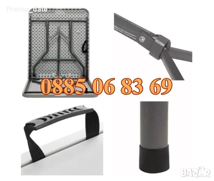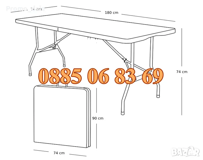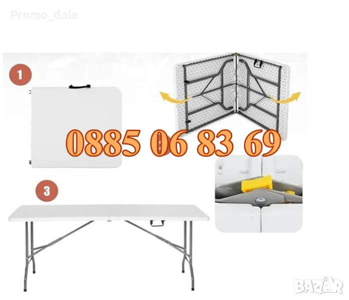 Сгъваема маса за кетъринг, градина, къмпинг 180/74 см с дръжка за носене
