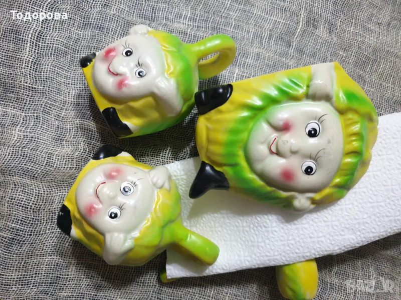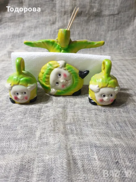 Порцеланови солнички и салфетник с весел детски мотив → Обява 49457862