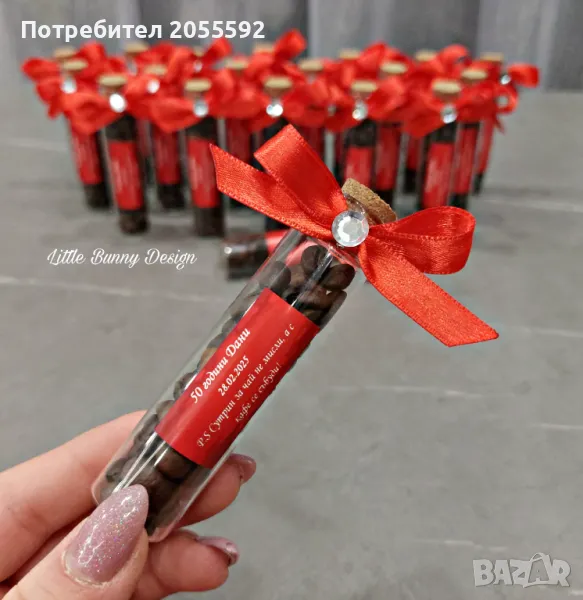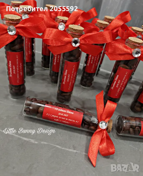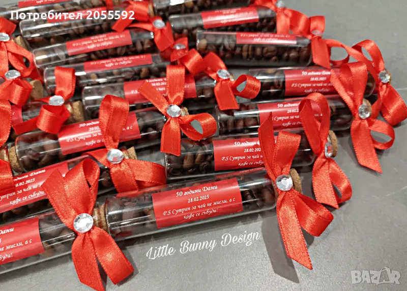 ❣️Персонализирани с етикет по избор и червени сатенени панделки с камъче❣️