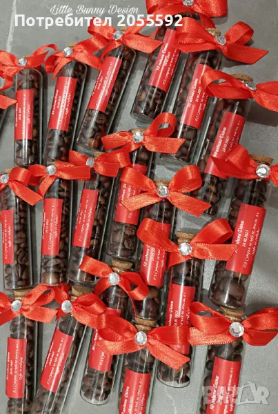Стъклени епруветки с кафе на зърна - подаръчета за гости
