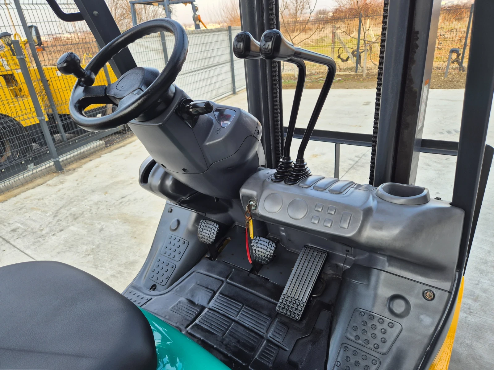 Автомат. Височина на вдигане 3м. Нов внос от Япония с гарантиран произход. Закупен от представителство на KOMATSU Tokio. Мотокара е в отлично техническо и визуално състояние. Напълно обслужен. Ново масло на двигател и хидравлика, нови филтри. Нови гуми. Безупречна работа на двигателя и ходова част, без никакви течове. Удобен за работа в ниски помещения. '' ТОЛИ АУТО'' предлага голяма гама от мотокари нов внос в наличност ( над 180 броя ), които са проверени и напълно обслужени в Япония. Допълнително са прегледани от наш екип и фирмата дава ГАРАНЦИЯ за безупречната работа на мотокарите. Ако изпитвате затруднения в избора си на мотокар, можете да се свържете с нас и да ви разясним характеристиката и предимствата на всяка една машина. Така ще ви помогнем в правилния избор. За нас е важно да ви предложим точната машина която да е подходяща в работата ви. Поддържаме в наличност резервни части и консумативи за всички модели японски мотокари. Фирмата предлага изгоден лизинг с 0, 7% месечна лихва. Осигуряваме транспорт до всяка точка на България. Коментар на цената само на място. Цената е без ДДС. Издаваме фактура.