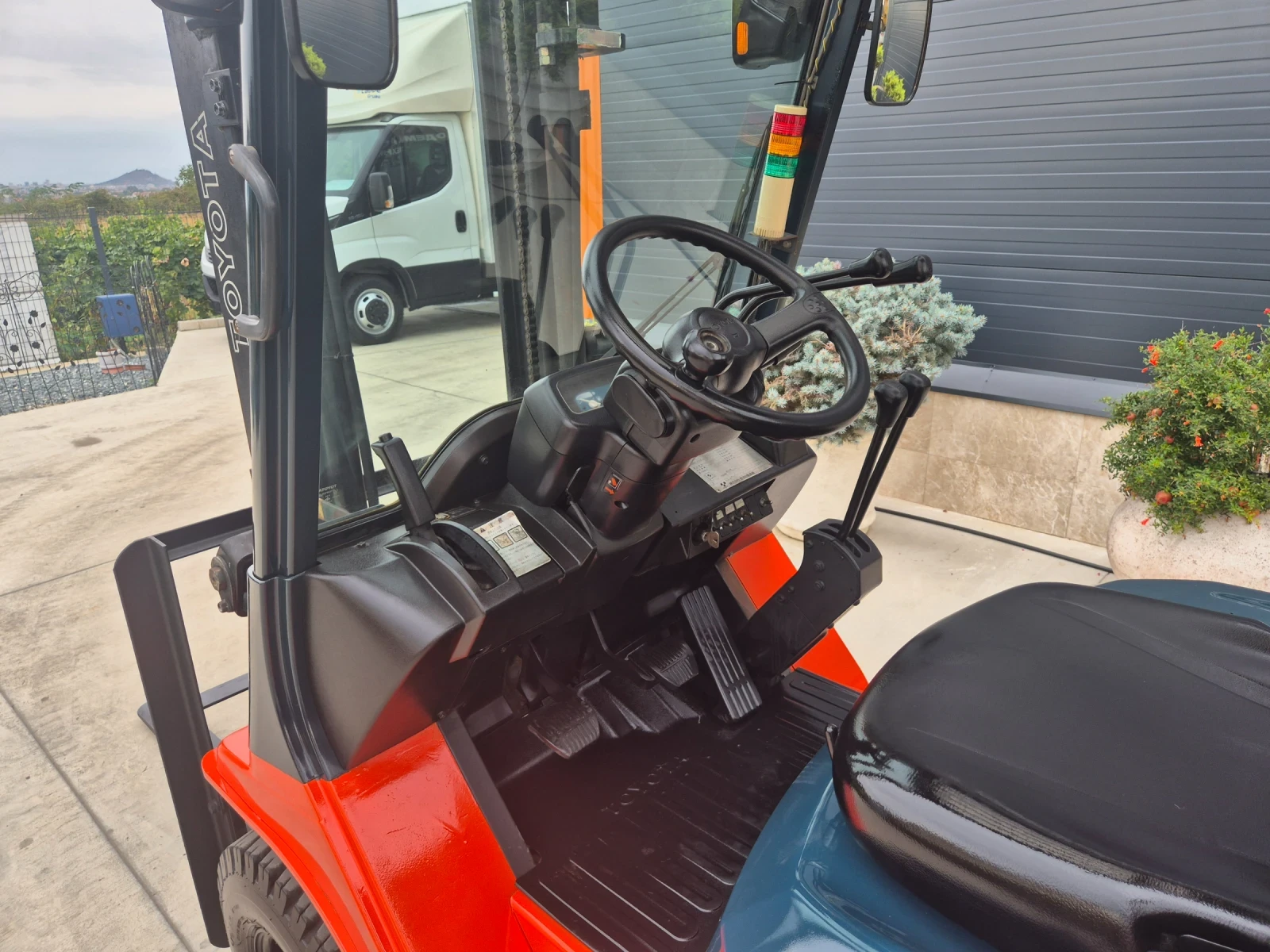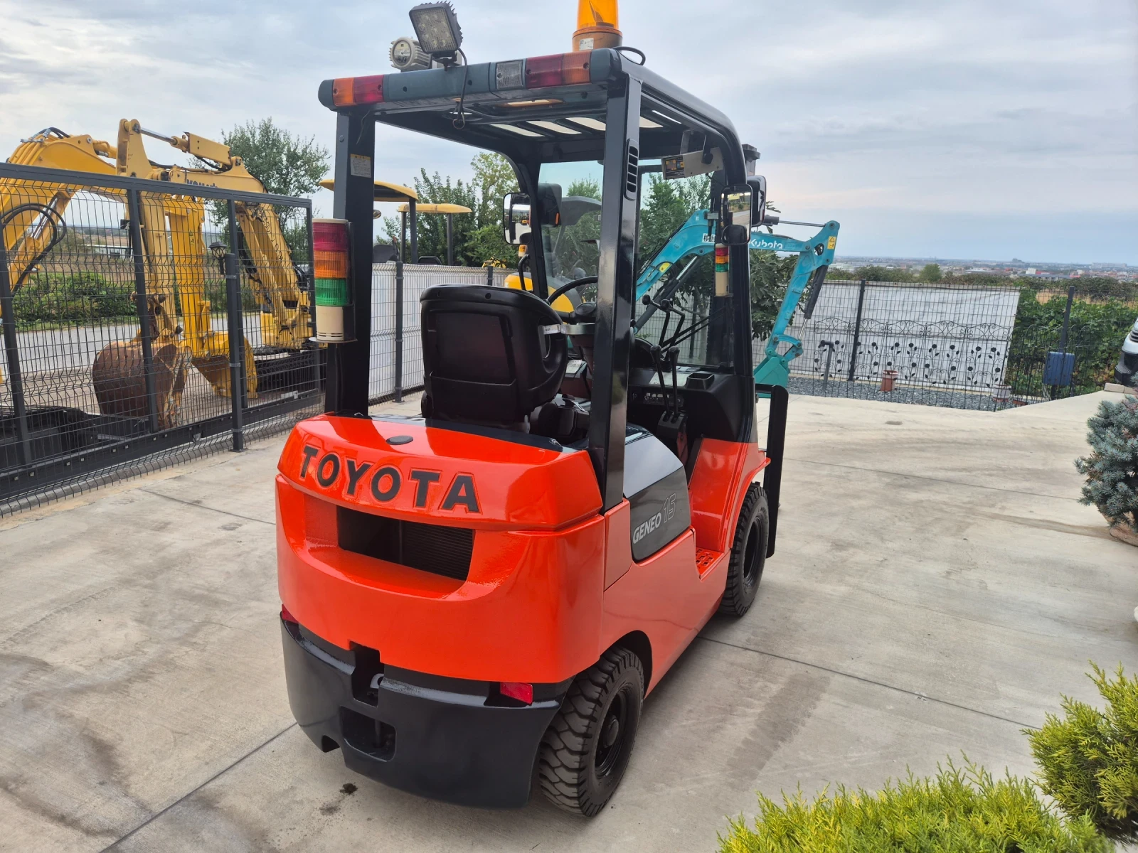 Височина на вдигане 3м. Нов внос от Япония с гарантиран произход. Закупен от представителство на TOYOTA Tokio. Мотокара е в отлично техническо и визуално състояние. Напълно обслужен. Ново масло на двигател и хидравлика, нови филтри. Нови гуми. Безупречна работа на двигателя и ходова част, без никакви течове. Удобен за работа в ниски помещения. '' ТОЛИ АУТО'' предлага голяма гама от мотокари нов внос в наличност ( над 150 броя ), които са проверени и напълно обслужени в Япония. Допълнително са прегледани от наш екип и фирмата дава ГАРАНЦИЯ за безупречната работа на мотокарите. Ако изпитвате затруднения в избора си на мотокар, можете да се свържете с нас и да ви разясним характеристиката и предимствата на всяка една машина. Така ще ви помогнем в правилния избор. За нас е важно да ви предложим точната машина която да е подходяща в работата ви. Поддържаме в наличност резервни части и консумативи за всички модели японски мотокари. Фирмата предлага изгоден лизинг с 0, 7% месечна лихва. Осигуряваме транспорт до всяка точка на България. Коментар на цената само на място. Цената е без ДДС. Издаваме фактура.