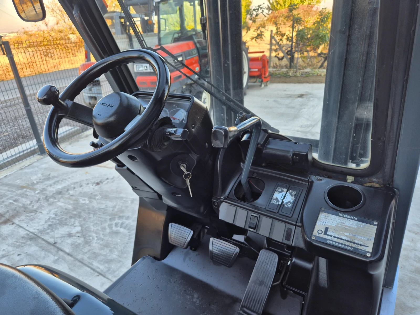 Челно стъкло. Автоматик. Височина на вдигане 3м. Нов внос от Япония с гарантиран произход. Закупен от представителство на NISSAN Tokio. Мотокара е в отлично техническо и визуално състояние. Напълно обслужен. Ново масло на двигател и хидравлика, нови филтри. Нови гуми. Безупречна работа на двигателя и ходова част, без никакви течове. Удобен за работа в ниски помещения. '' ТОЛИ АУТО'' предлага голяма гама от мотокари нов внос в наличност ( над 100 броя ), които са проверени и напълно обслужени в Япония. Допълнително са прегледани от наш екип и фирмата дава ГАРАНЦИЯ за безупречната работа на мотокарите. Ако изпитвате затруднения в избора си на мотокар, можете да се свържете с нас и да ви разясним характеристиката и предимствата на всяка една машина. Така ще ви помогнем в правилния избор. За нас е важно да ви предложим точната машина която да е подходяща в работата ви. Поддържаме в наличност резервни части и консумативи за всички модели японски мотокари. Фирмата предлага изгоден лизинг с 0, 7% месечна лихва. Осигуряваме транспорт до всяка точка на България. Коментар на цената само на място. Цената е без ДДС. Издаваме фактура.