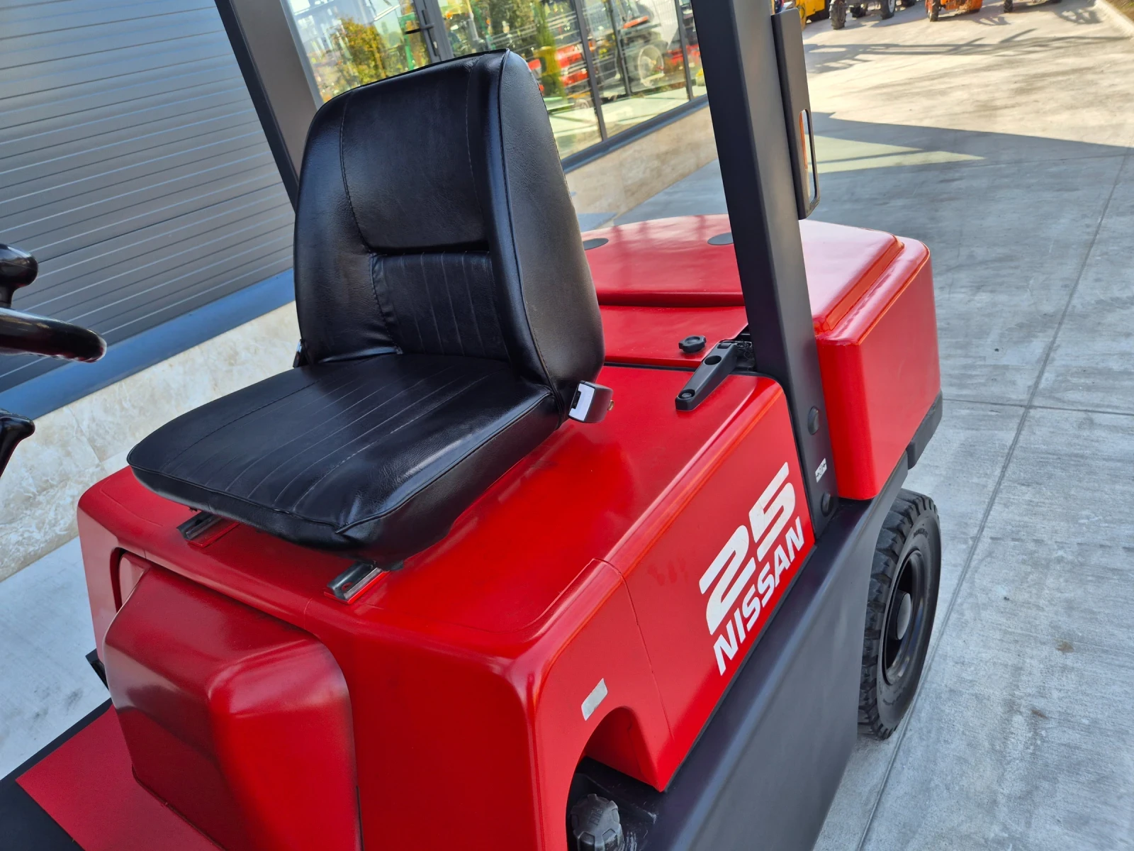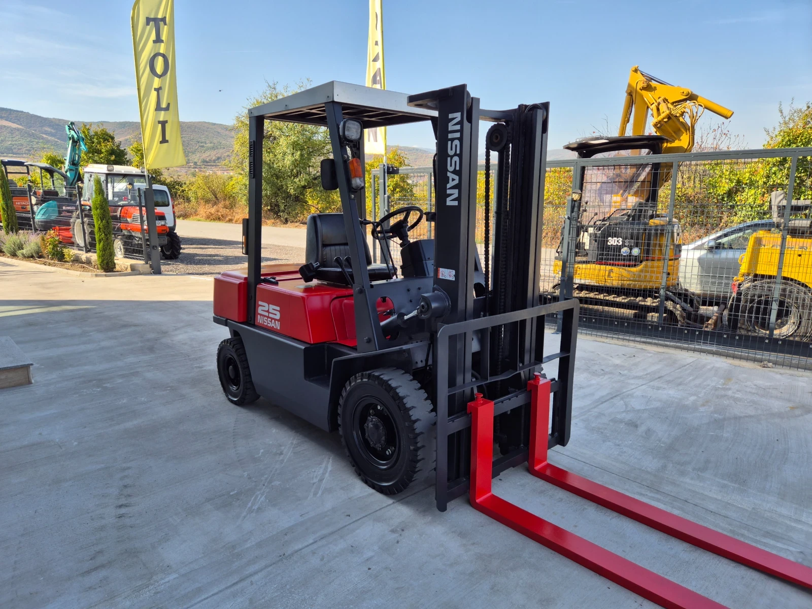 2. 5 тона. Височина на вдигане 3м. Нов внос от Япония с гарантиран произход. Закупен от представителство на NISSAN - TOKYO. Мотокара е в отлично техническо и визуално състояние. Напълно обслужен. Ново масло на двигател и хидравлика, нови филтри. Нови гуми. Безупречна работа на двигателя и ходова част, без никакви течове. Удобен за работа в ниски помещения. '' ТОЛИ АУТО'' предлага голяма гама от мотокари нов внос в наличност ( над 120 броя ), които са проверени и напълно обслужени в Япония. Допълнително са прегледани от наш екип и фирмата дава ГАРАНЦИЯ за безупречната работа на мотокарите. Ако изпитвате затруднения в избора си на мотокар, можете да се свържете с нас и да ви разясним характеристиката и предимствата на всяка една машина. Така ще ви помогнем в правилния избор. За нас е важно да ви предложим точната машина която да е подходяща в работата ви. Поддържаме в наличност резервни части и консумативи за всички модели японски мотокари. Фирмата предлага изгоден лизинг с 0, 7% месечна лихва. Осигуряваме транспорт до всяка точка на България. Коментар на цената само на място. Цената е без ДДС. Издаваме фактура.