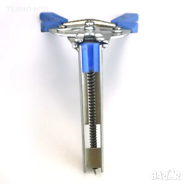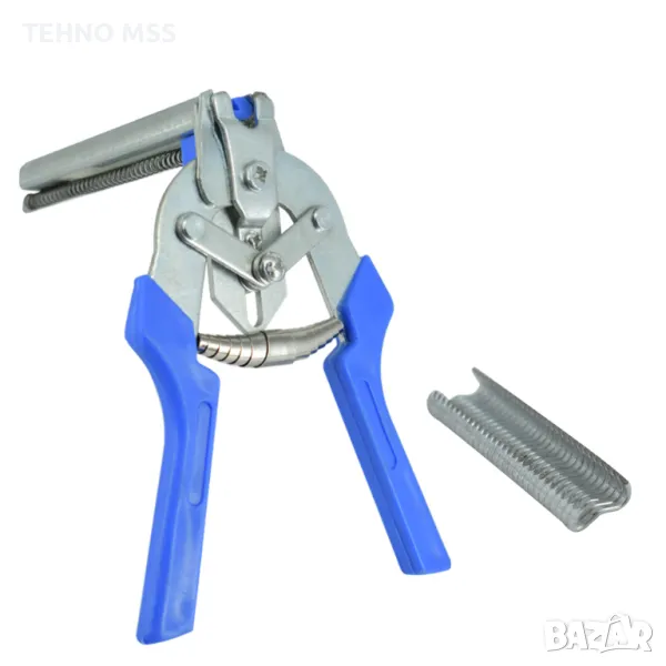 Има 2 пружини, едната за по-лесно боравене, другата за автоматично позициониране на скобите в системата за пристягане.