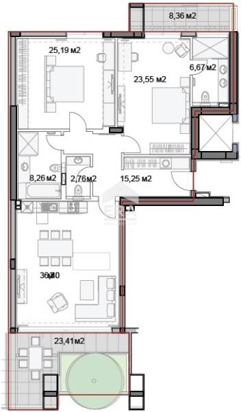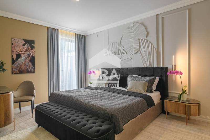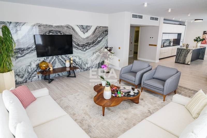 Ера Лайф обявява за продажба елегантен тристаен апартамент с площ 211,20 м2 (застроена площ 173,16 м2), разположен на седми етаж от осем в луксозен затворен комплекс на метри от плажната ивица. Имотът е със следното разпределение: антре (15,25) м2, дневен тракт с кухненска част (36,40) м2 с прекрасен изглед към морския бряг и голяма тераса (23,41) м2, две спални (25,19) м2 и (23,55) м2 със собствен санитарен възел (6,67) м2 и излаз на тераса (8,36) м2, самостоятелен WC (2,76) м2, комбинирано санитарно помещение (8,26) м2, ведно с прилежащо мазе (12,05) м2. Вж раздел 'План'. Статут: апартамент.