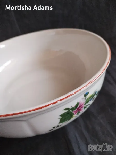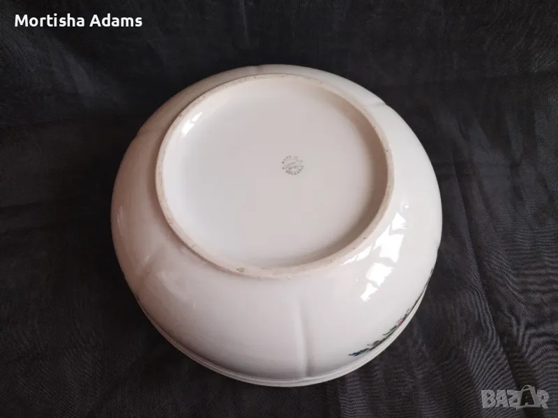 🌿 Голяма купа от "Изида" с тристранен декор, височина 9см., диаметър на отвора 26см. и на основата- 15,5см. Здрава, рехавост на канта и следи от прибори.