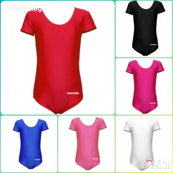 4* Детско трико с къс ръкав и обло деколте MAXIMA. Подходящо за гимнастика, балет и танци. Трикото е изработено от изключително мек и приятен материал, съобразен с нежната кожа на децата. Материал - 70% полиестер, 30% ликра. Цвят - различни цветове. Различни размери, които съответстват на височината на детето, както следва: размер L - за ръст 100 см, размер XL - за ръст 110 см, размер 2XL - за ръст 120 см, размер 3XL - за ръст 130 см, размер 4XL - за ръст 140 см, размер 5XL - за ръст 150 см, размер 6XL - за ръст 160 см.