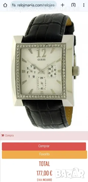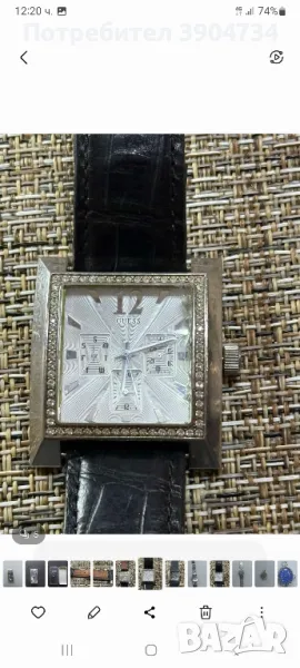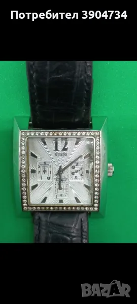 Дамски кварцов часовник от луксозната серия GUESS Timeless beauty elle.Безел от камъни Сваровски.Прецизен японски механизъм.Многофункционален дисплей показващ ден от седмица,дата,24-часово време в допълнение към стандартното време Водоустойчив.Оригинална каишка от естествена кожа.Единствена забележка е леко пукнато стъкло в ъгъла видимо от снимките. За това и цената е такава.Смяната е 20-25лв.