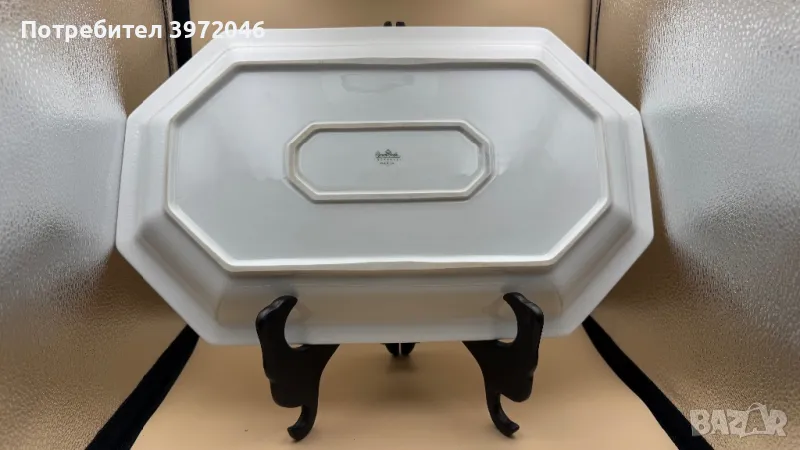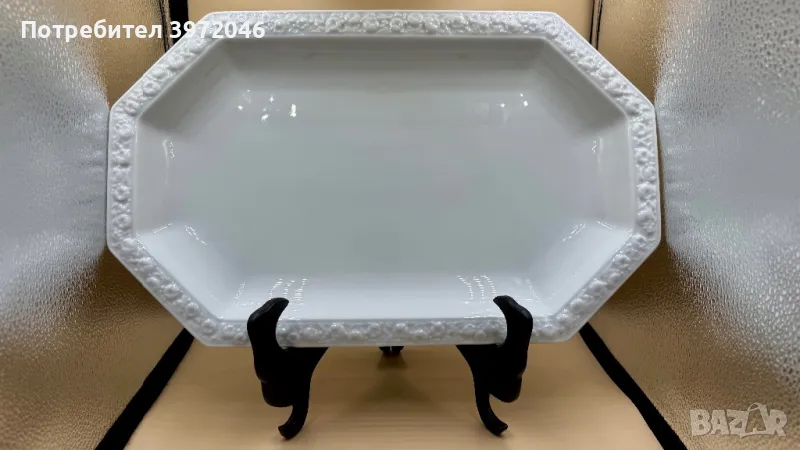 Предлагам два елегантни плата от емблематичната серия Maria на Rosenthal. Те се отличават с класическата осмоъгълна форма и характерния релефен венец от плодове и цветя по ръба. Маркировката ”.GERMANY.” с точки от двете страни потвърждава, че са произведени през 1979 г.