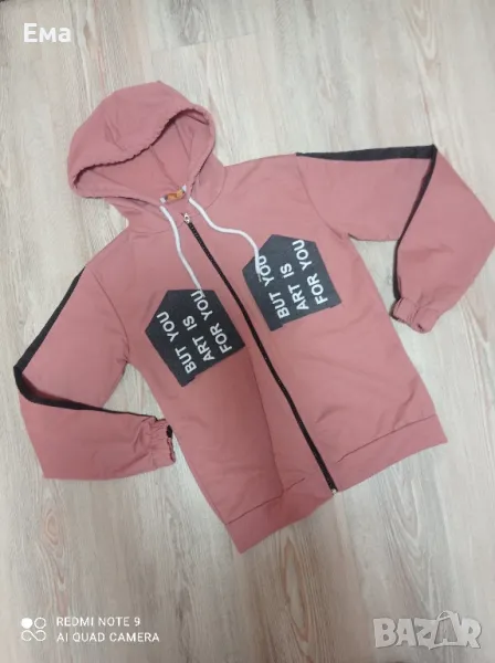 Дамски лот, S размер. Ефектен суичър с качулка и черни слим дънки, талия 36 см едностранно.