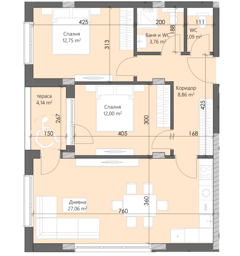 Оферта 77762Б Предлагаме Ви тристаен апартамент с Акт 14, в нова модерна сграда, на комуникативно място в района на кв. Кършияка. Жилището се намира на пети етаж и е с площ от 100 кв.м. Имотът има следното разпределение: