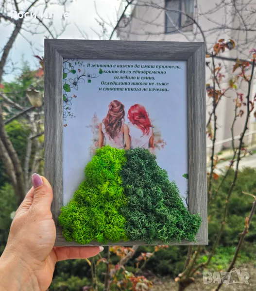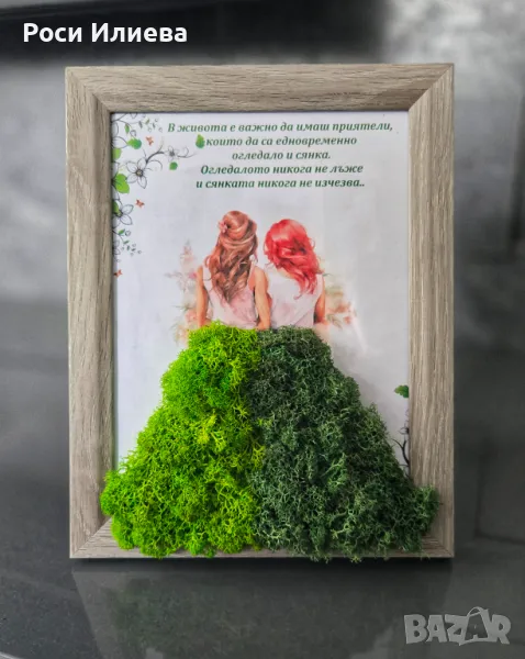 Картина "Приятелки" декорирана с естествен скандинавски мъх → Обява 49464402