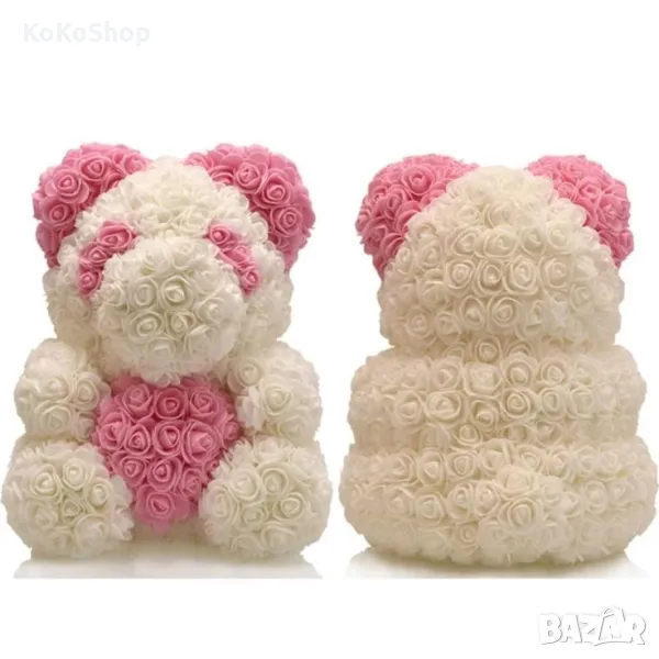 Мече от рози със сърце-40 см./мече от рози в луксозна кутия/бяло мече с розово сърце → Обява 49464423