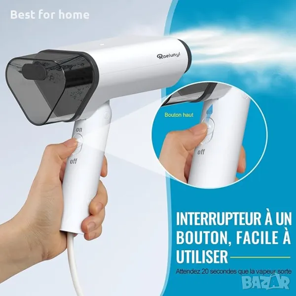 【ВГРАДЕН РЕЗЕРВОАР ЗА ВОДА УСТОЙЧИВ НА ТЕЧове】 Парната ютия Raelunyi има резервоар за вода от една част, който предотвратява разливи и течове, осигурявайки непрекъснато гладене.