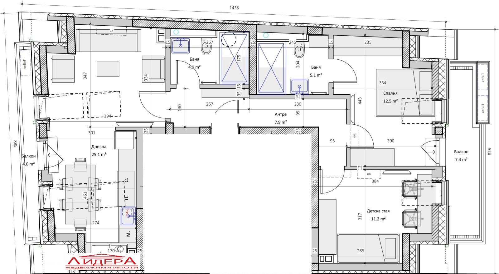 - две бани с тоалетни