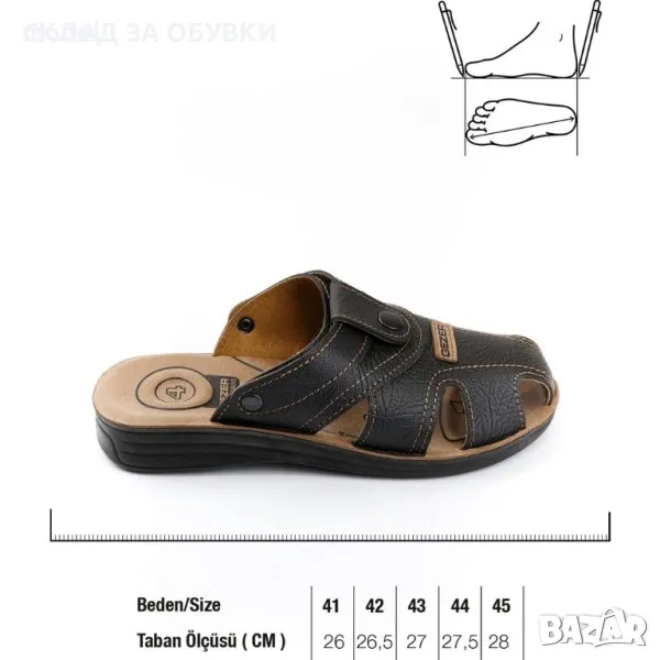 Мъжки чехли на турската марка GEZER, които посредствум каишката отпред, могат да се трансформират в сандали. Чехлите са с анатомична стелка, изработени са от дебела еко кожа, която е с меко покритие от вътрешната страна, за да не дразни кожата на краката и дебелината на подметката отзад е 3см. Меки и практични, чехлите са подходящи за пролетно-летния сезон, а понеже са затворени отпред, удобни са и за шофиране.