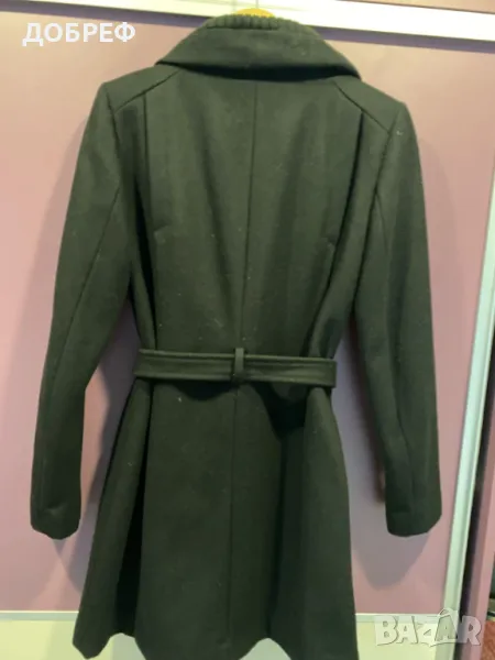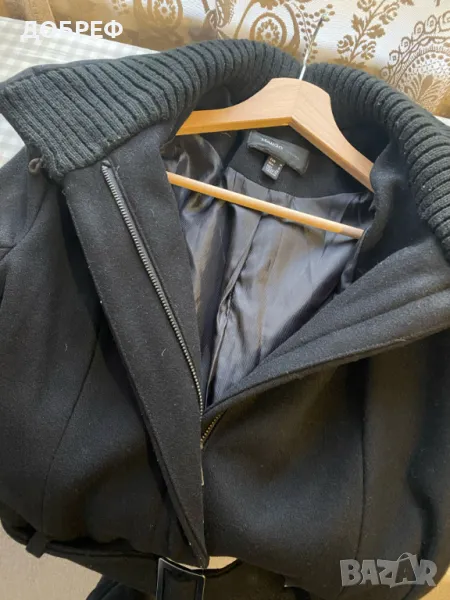 Вълнено черно палто, средна дължина, с колан, запазено, MANGO, M размер.