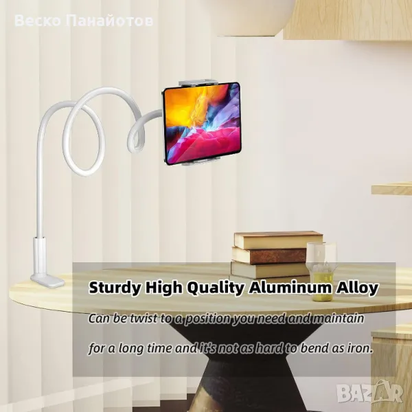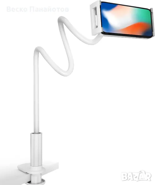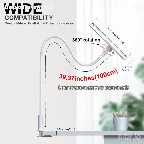 Държач за телефон за легло, 360 Гъвкав мързелив държач за таблет за легло, с регулируема 39,4" стойка за скоба за монтиране на скоба за дълго рамо Стойка за телефон за 4,7~10,5" iPhone/iPad Air/Pro/mini/таблет/превключвател, бял. Марка