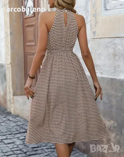 Роклята има дизайн на деколтето, показващ линиите на раменете и извивките на врата, добавяйки женска елегантност и сексапил. Дизайнът на талията е по-висок, подчертава линията на талията и създава модифициращ тялото ефект. Гофрираният дизайн прави роклята по-пластова и текстурирана, добавяйки визуално богатство и детайлност.