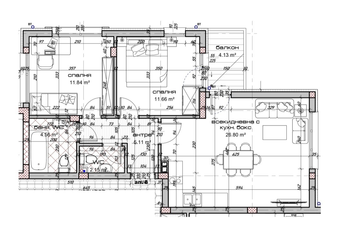 👉27м2/ 12м2/12м2- ДНЕВНА/ СПАЛНЯ/ СПАЛНЯ
