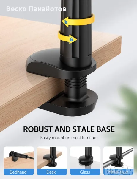 - 【ЛЕСНО ЗА МОНТИРАНЕ И ПОЗИЦИОНИРАНЕ】 Основата на скобата се отваря максимално до 2,75 инча, може да се монтира сигурно на места като табла на легло, нощно шкафче, бюро, нощно шкафче или маса до любимия ви стол, дори пейка в парка! Със стойката за телефон за таблет, освободете ръцете си, когато правите Facetime разговори, видеоконференции, гледате Netflix или гледате рецепти, докато готвите. [Съвети за използване: Огънете гъшата шия във формата на „S“ или кръг за по-голяма стабилност, когато държите тежък таблет.]