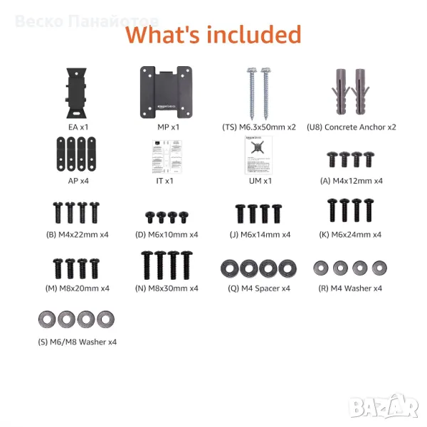 • Монтажен хардуер, шаблон за монтаж и ръководство за потребителя са включени.