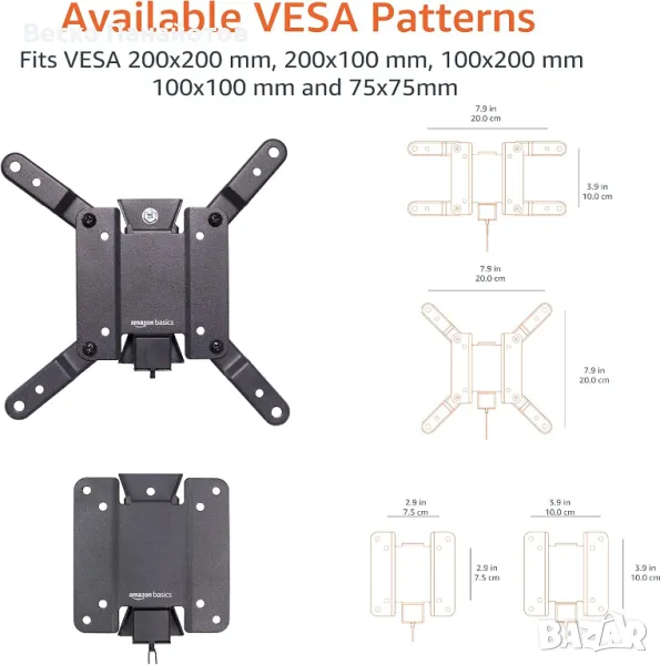 • Проектиран за VESA с размери от 75X75 MM до 200x200 MM.