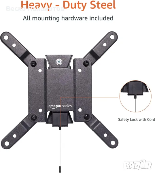 Amazon Basics Tilt TV Wall Mount пасва на 12-40 инчови телевизори и VESA 200x200, черен.