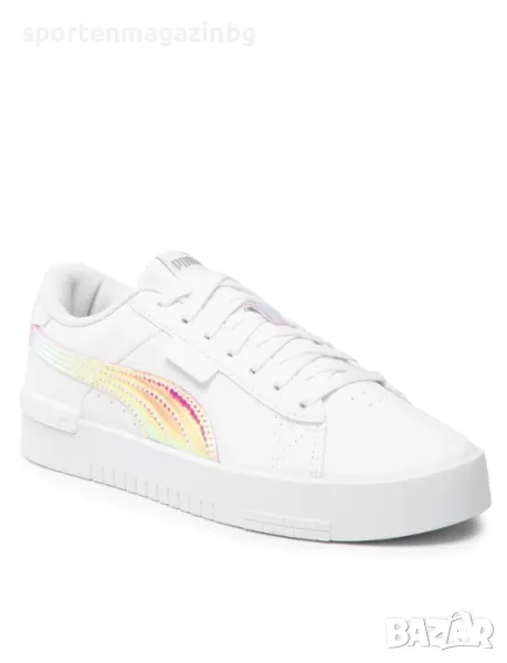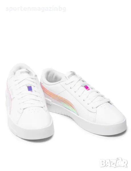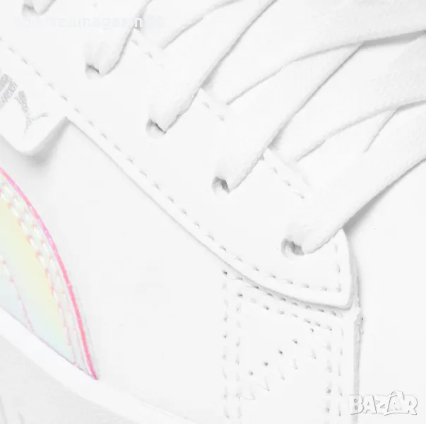 Класическата тенис конструкция получава бляскаво преобразяване с лъскави холографии и лога. Комбинацията от издръжливи синтетични кожени материали в горната част се съчетава с емблематичната подметка и повишена височина на профила. TPU петата, холографската PUMA Formstrip, връзките и блестящите детайли правят това бижу наистина да блести.