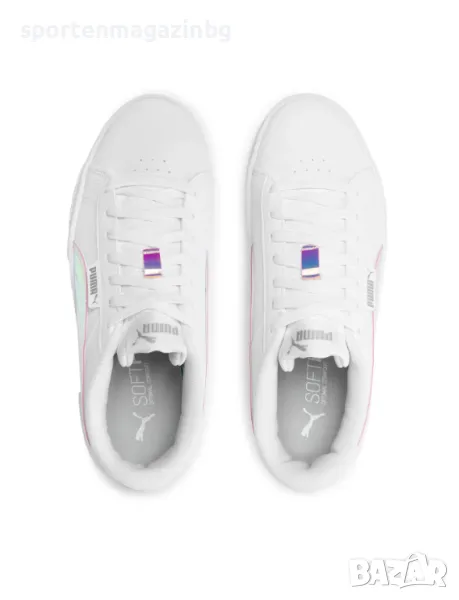 Външна част, изработена изцяло от еко кожа и синтетични наслагвания за комфорт и лесна поддръжка. TPU подсилена задна част за повече стабилност. Нисък профил за по-голяма свобода при движение. Пълно дантелено затваряне с подплатен език и яка. Надпис с лого Puma върху езика, встрани и лого отзад. Блестящи, гланцови, холографски PUMA Formstrip от двете страни. Вътрешната текстилна част заедно със стелката Soft Foam + осигуряват невероятна мекота и комфорт с всяка крачка. Подметката е висока, гумена, релефна и гъвкава, осигурявайки перфектно сцепление с различни повърхности. Горната част на тази обувка е направена с най-малко 20% рециклирани материали като стъпка към по-добро бъдеще