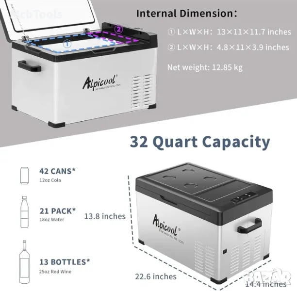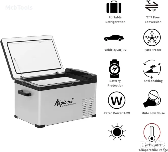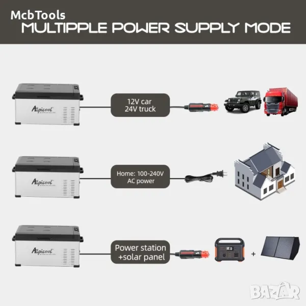 AlpiCool Хладилници Фризер за джипове, къмпинг каравани, камиони, бусове. Хладилна кутия 12V 24V 220V.